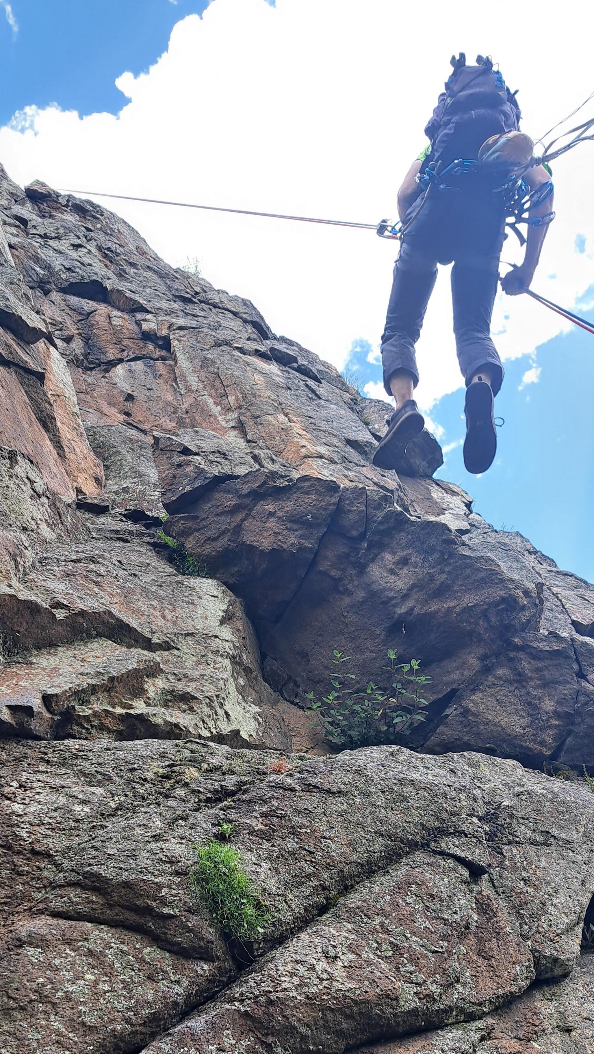 Tony et Valentin se surpassent sur la “Si Vis Pacem Tire pas au clou”, une 6b, puis enchaînent également la 2ème longueur, un 6a bien costaud.